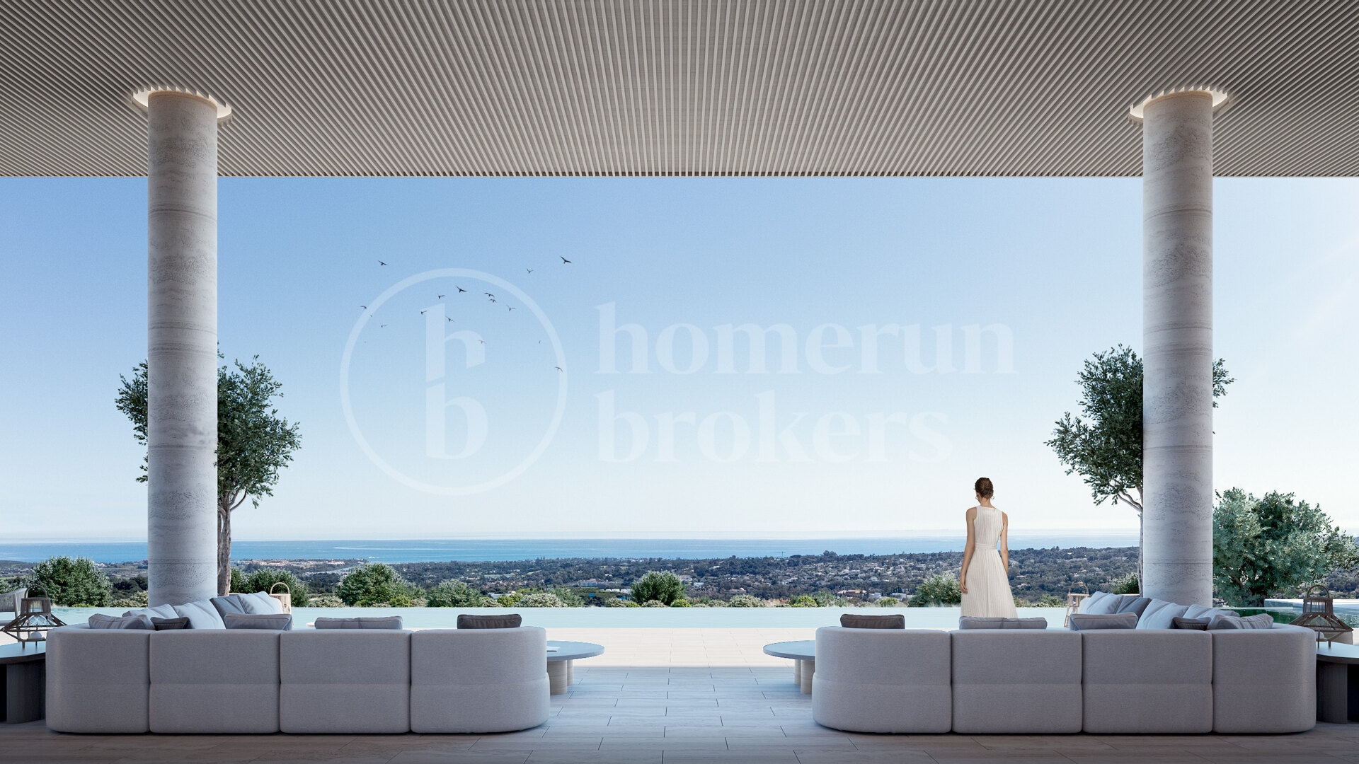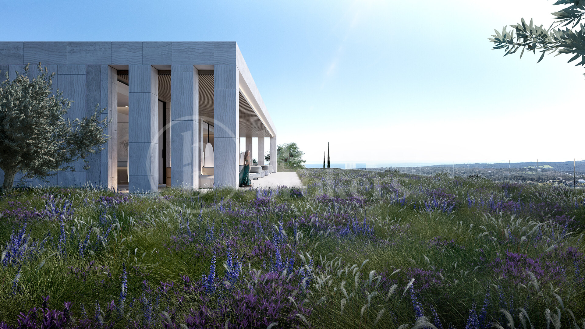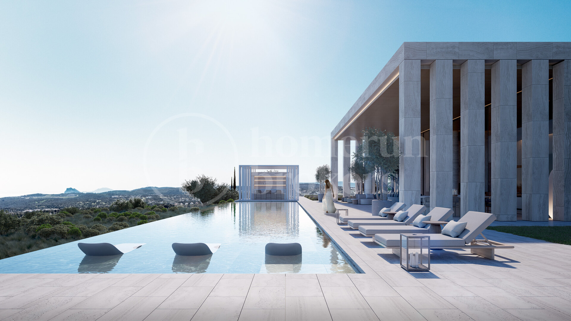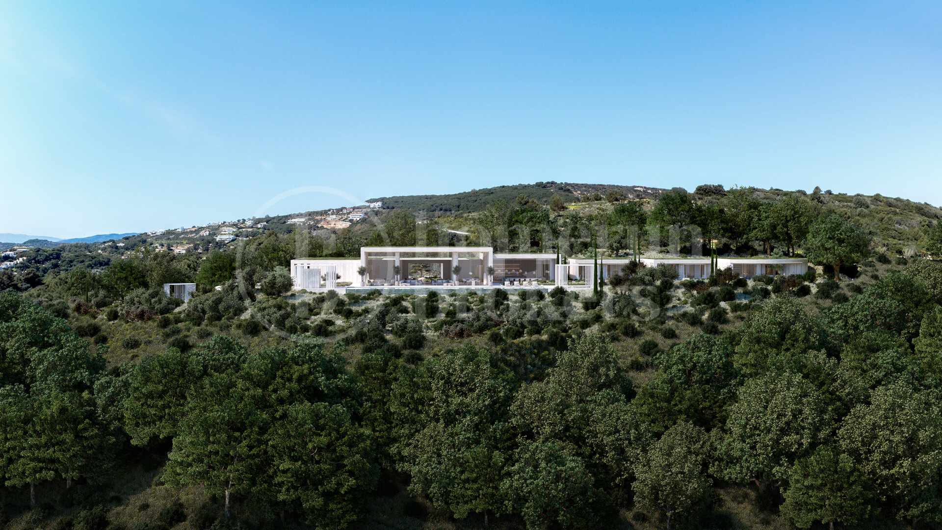 Fastigheten vetter mot sydost och bjuder på spektakulära panoramavyer över böljande golfbanor, Medelhavet och ända bort till Gibraltar. Designen maximerar den omgivande miljön med stora glaspartier från golv till tak som släpper in rikligt med naturligt ljus och ramar in det lugna landskapet. Arkitekturen fokuserar på ekologisk integration och välbefinnande – ett hem som fungerar som ett andligt tillflyktsort i balans med naturen.