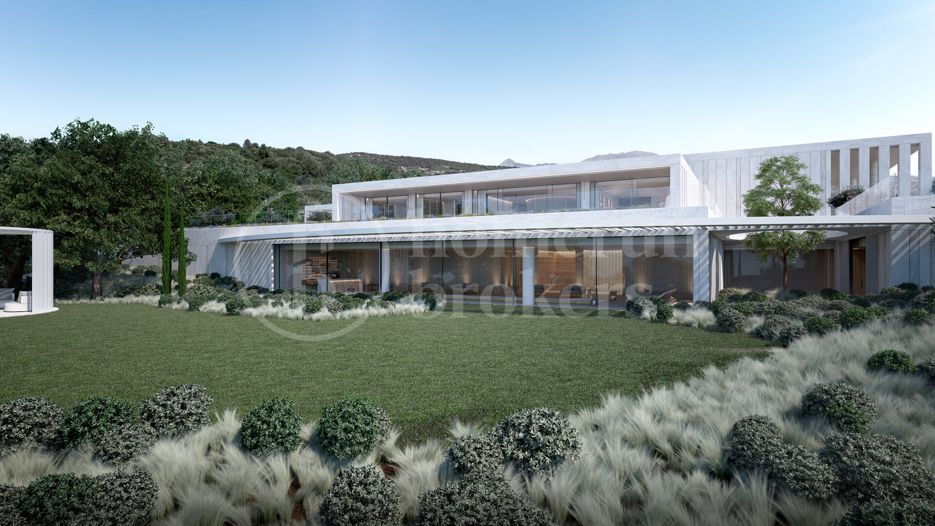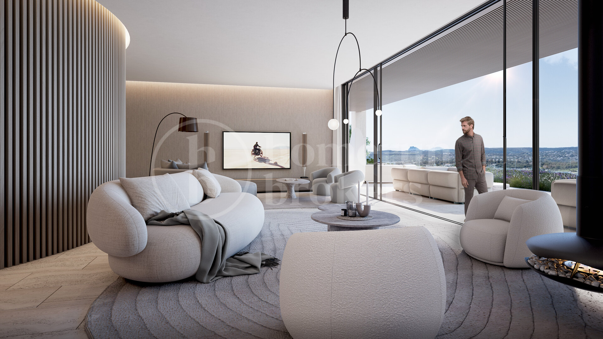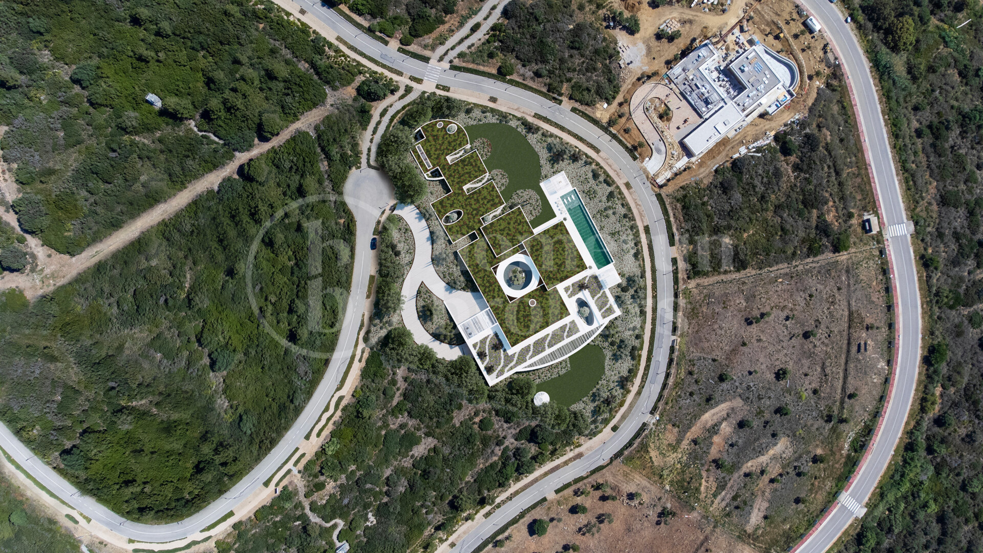 Fastigheten vetter mot sydost och bjuder på spektakulära panoramavyer över böljande golfbanor, Medelhavet och ända bort till Gibraltar. Designen maximerar den omgivande miljön med stora glaspartier från golv till tak som släpper in rikligt med naturligt ljus och ramar in det lugna landskapet. Arkitekturen fokuserar på ekologisk integration och välbefinnande – ett hem som fungerar som ett andligt tillflyktsort i balans med naturen.
