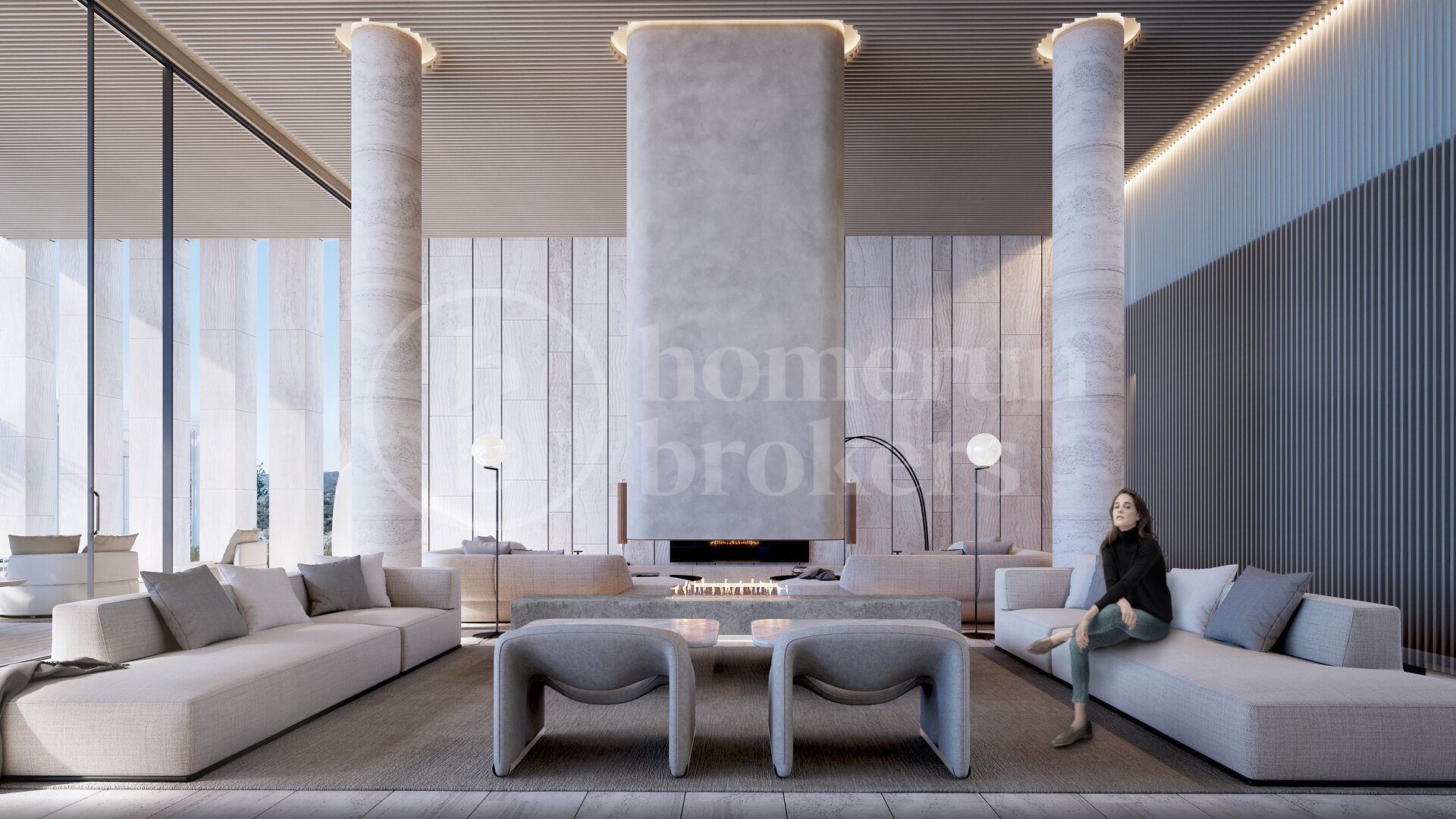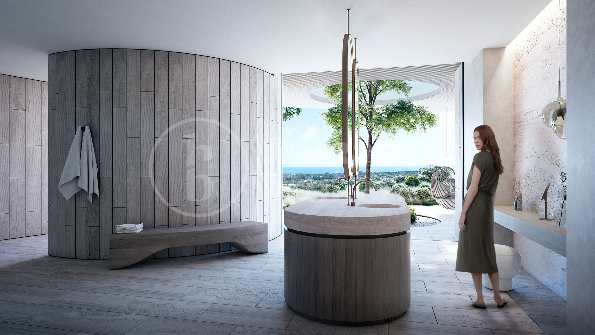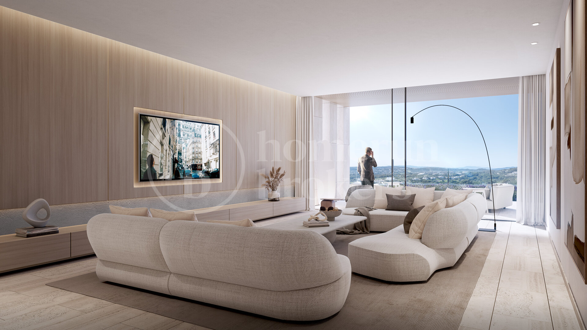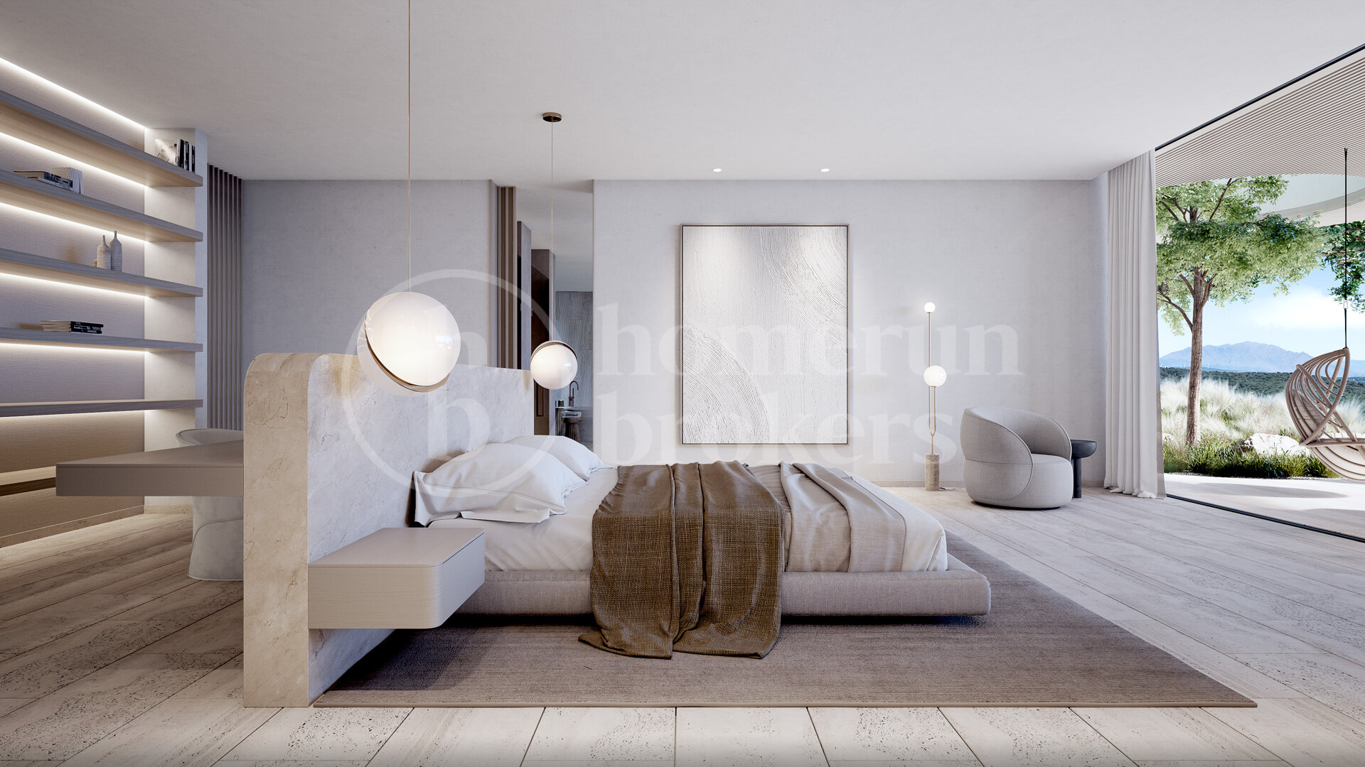 Fastigheten vetter mot sydost och bjuder på spektakulära panoramavyer över böljande golfbanor, Medelhavet och ända bort till Gibraltar. Designen maximerar den omgivande miljön med stora glaspartier från golv till tak som släpper in rikligt med naturligt ljus och ramar in det lugna landskapet. Arkitekturen fokuserar på ekologisk integration och välbefinnande – ett hem som fungerar som ett andligt tillflyktsort i balans med naturen.