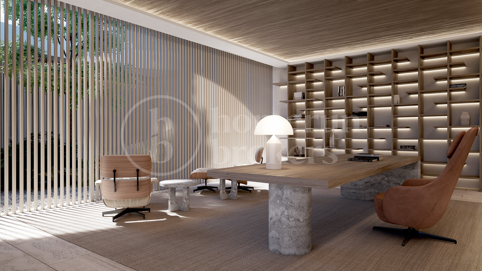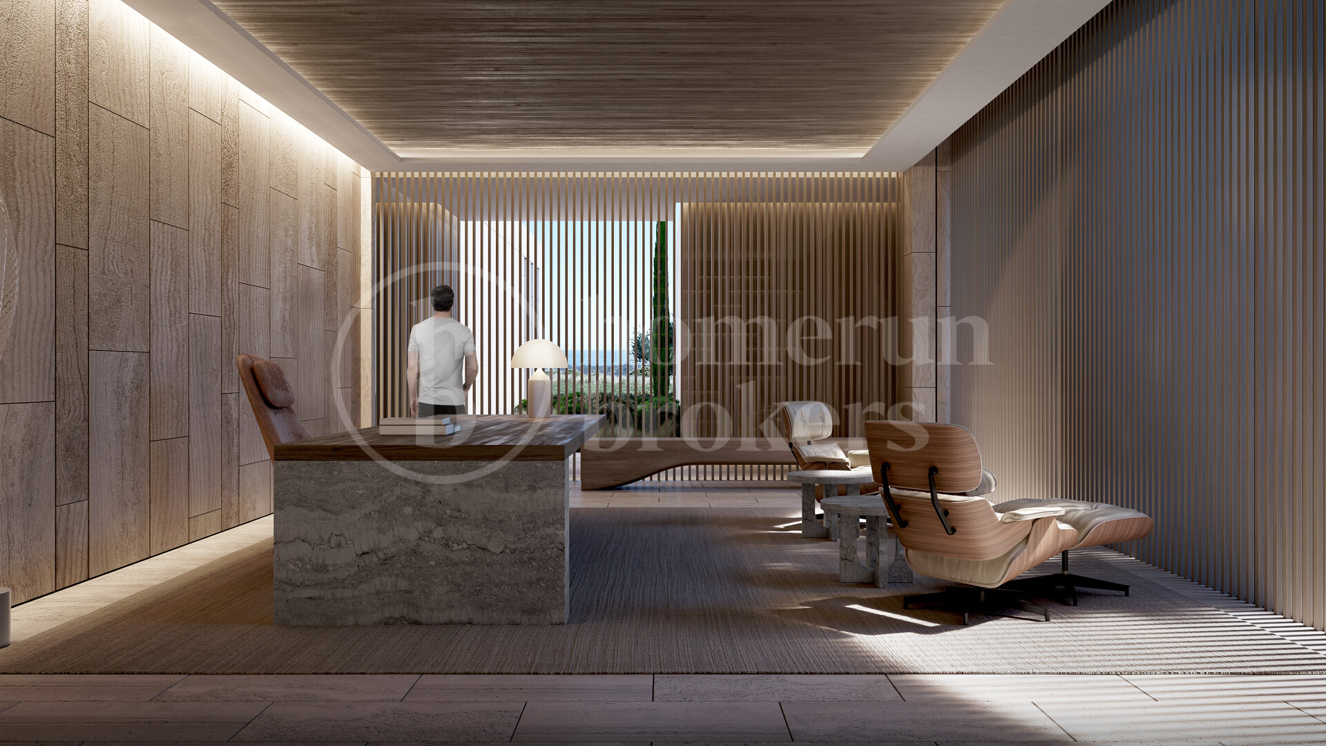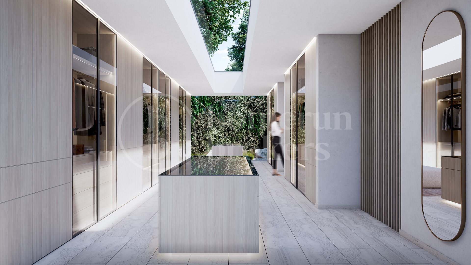 Utomhusmiljön är lika imponerande, med eleganta terrasser, nedsänkta loungedel och middagsplatser under bar himmel – allt omgivet av hållbart designade trädgårdar med mogna träd och välskötta gräsmattor. En infinitypool med utsikt mot horisonten skapar en idealisk plats för både fest och vila.