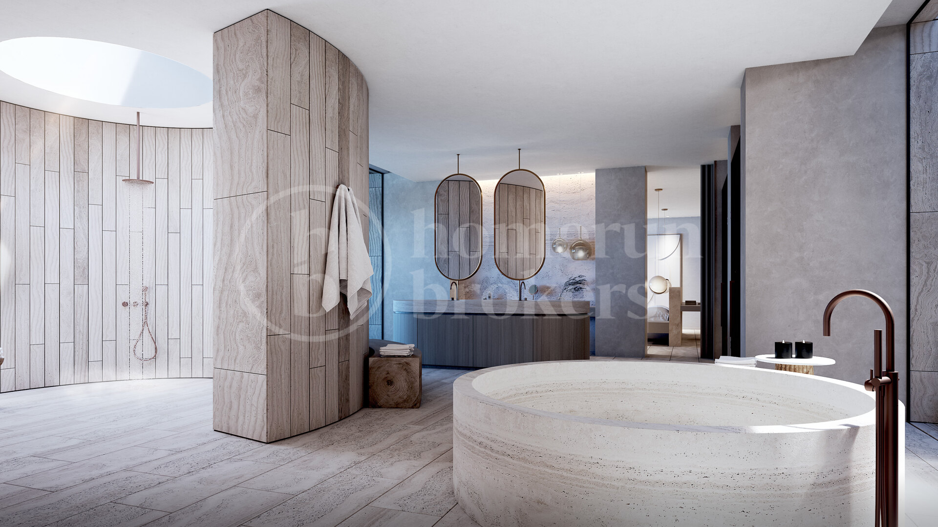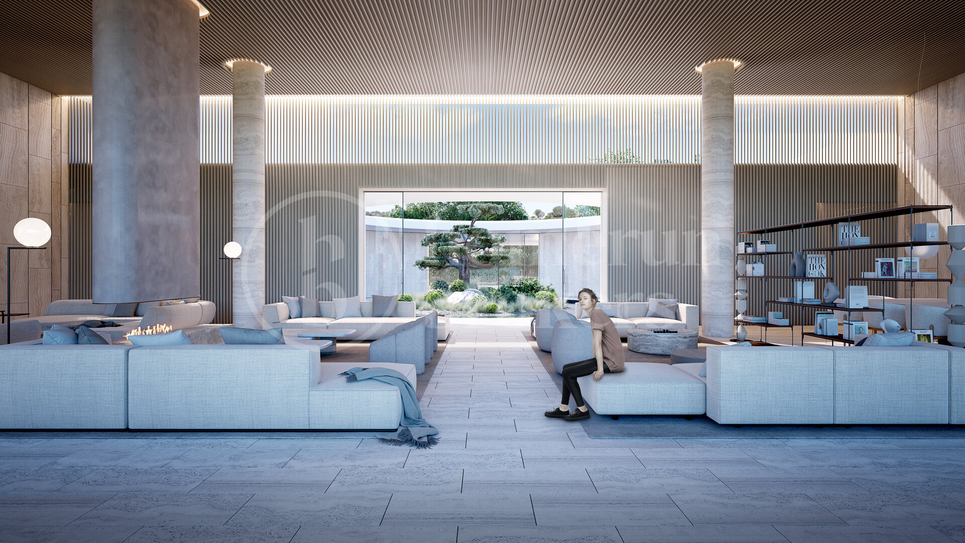 Hela fastigheten genomsyras av modern lyx: golvvärme, smarta hemlösningar, avancerad luftkonditionering, skräddarsydd belysning och exklusiva materialval. Bioetanolkaminer, vatteninslag och inre gårdar med naturliga träd höjer ytterligare känslan av lugn. Hiss förbinder samtliga våningar och garageplats för 8 bilar samt ytterligare 4 parkeringsplatser utomhus finns tillgängligt.