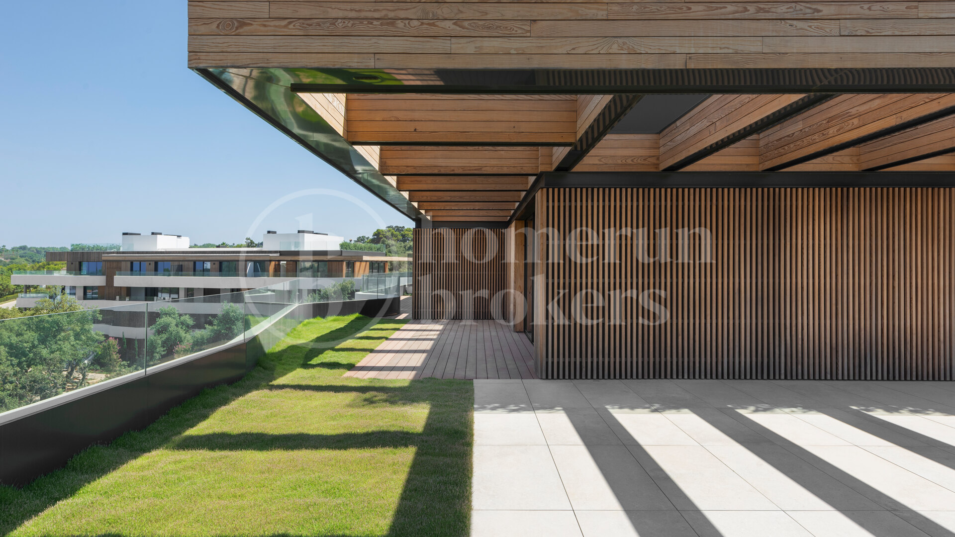 This apartment features at least 195 square metres including terrace space, providing open-air extensions to the living areas. Large glass doors connect the inside with the exterior, allowing residents to enjoy the surrounding greenery and landscaped parkland views. Ground floor homes come with private gardens, while the upper Sky Villas offer rooftop terraces with panoramic outlooks, making every level a unique living experience. Included are two secure underground parking spaces and a spacious private storeroom for added convenience.