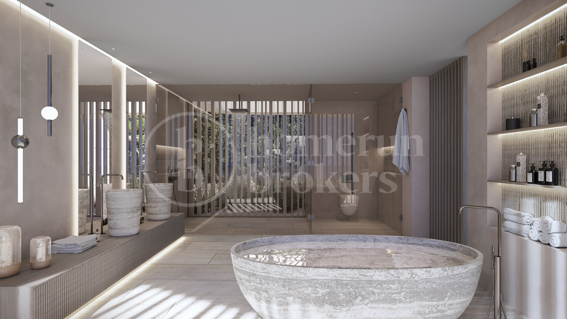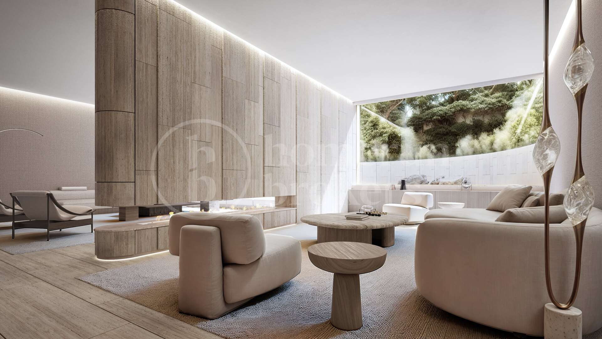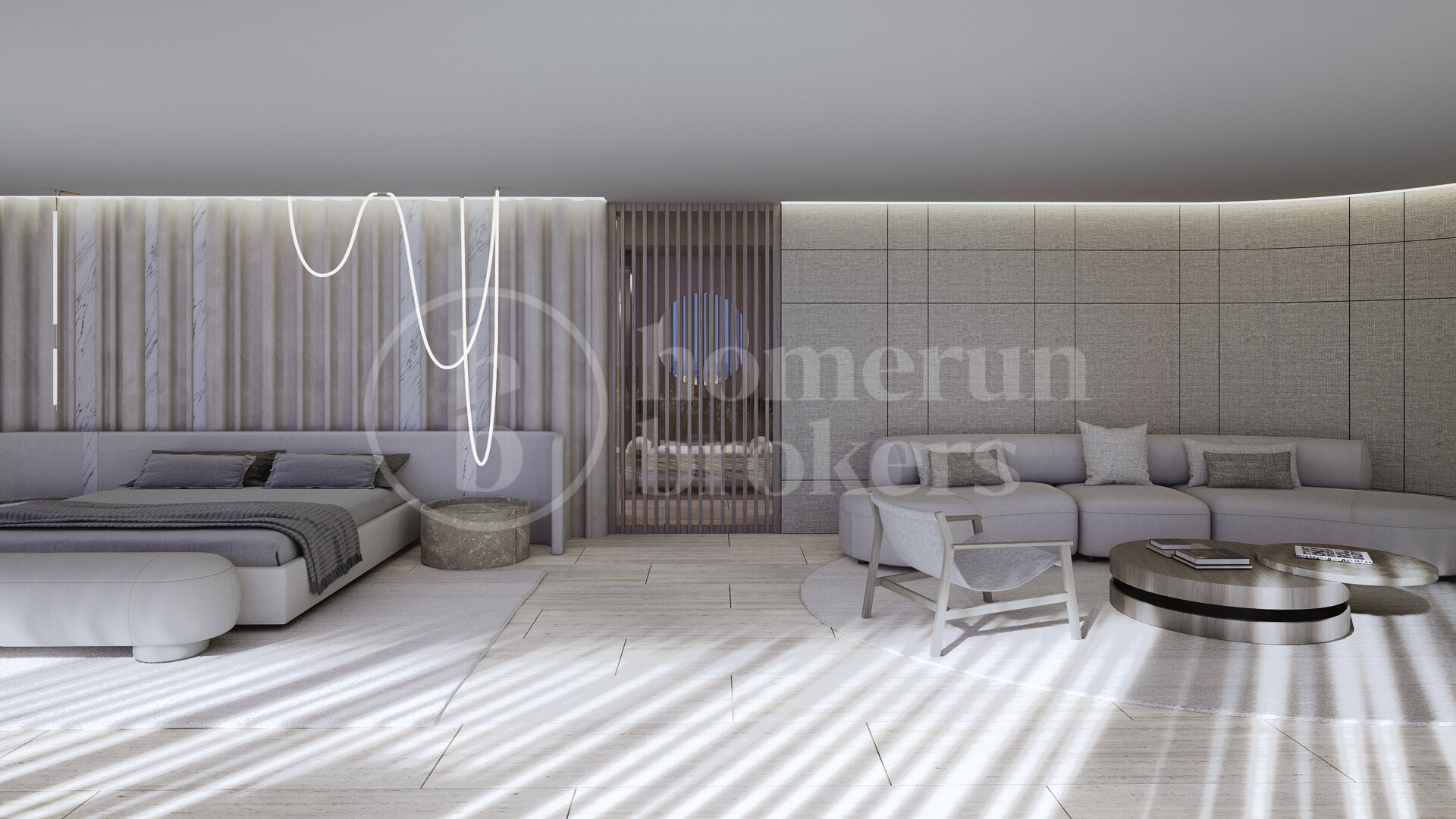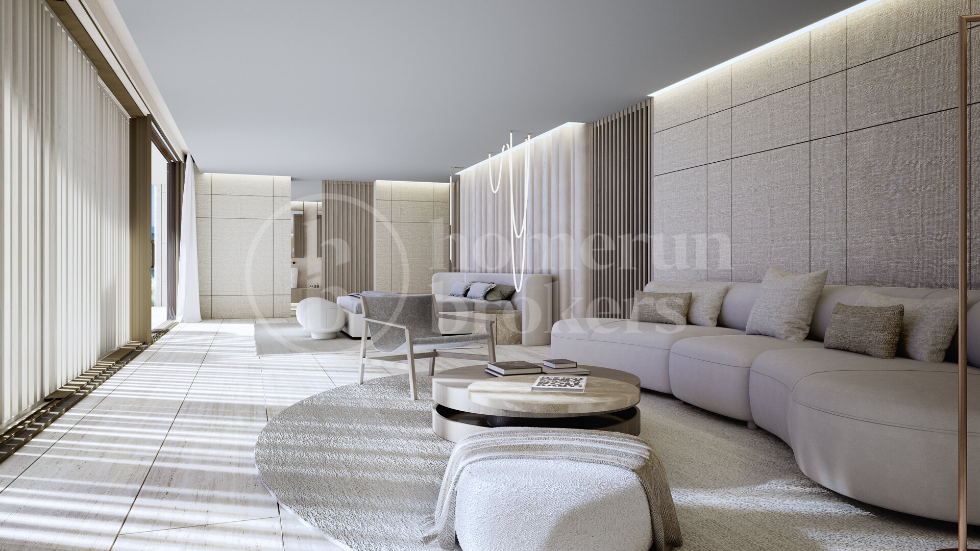 The property reflects over 25 years of ARK’s experience in creating bespoke homes that merge design excellence with sustainability. Originally inspired by the natural topography, the villa’s layout adapts fluidly to the terrain, rotating gently to embrace panoramic views and optimal sunlight. Its organic curved form gives rise to the home’s defining character — a continuous dialogue between structure and landscape. Around this central idea, the pool, atriums, and courtyards follow a unified architectural rhythm, where every detail responds to the logic of the site.